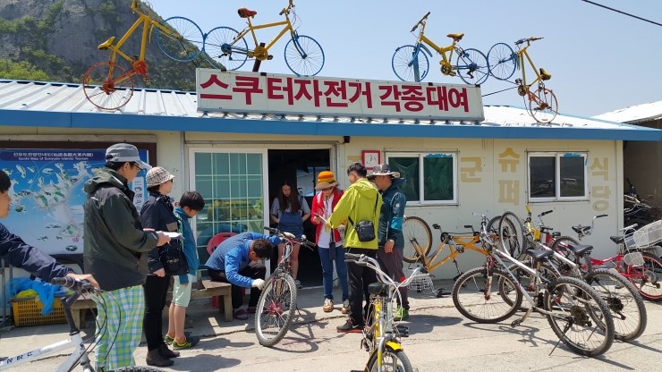 야미도에서 선유도에 오면 자전거 대어점이 있어요. 시간당 3천원인데, 하루 종일 타면 1만원, 그나마 자전거가 편해요. 자전거로 돌면 선유도와 장자도 인근 모두를 구석구석 돌 수 있기 때문이죠.